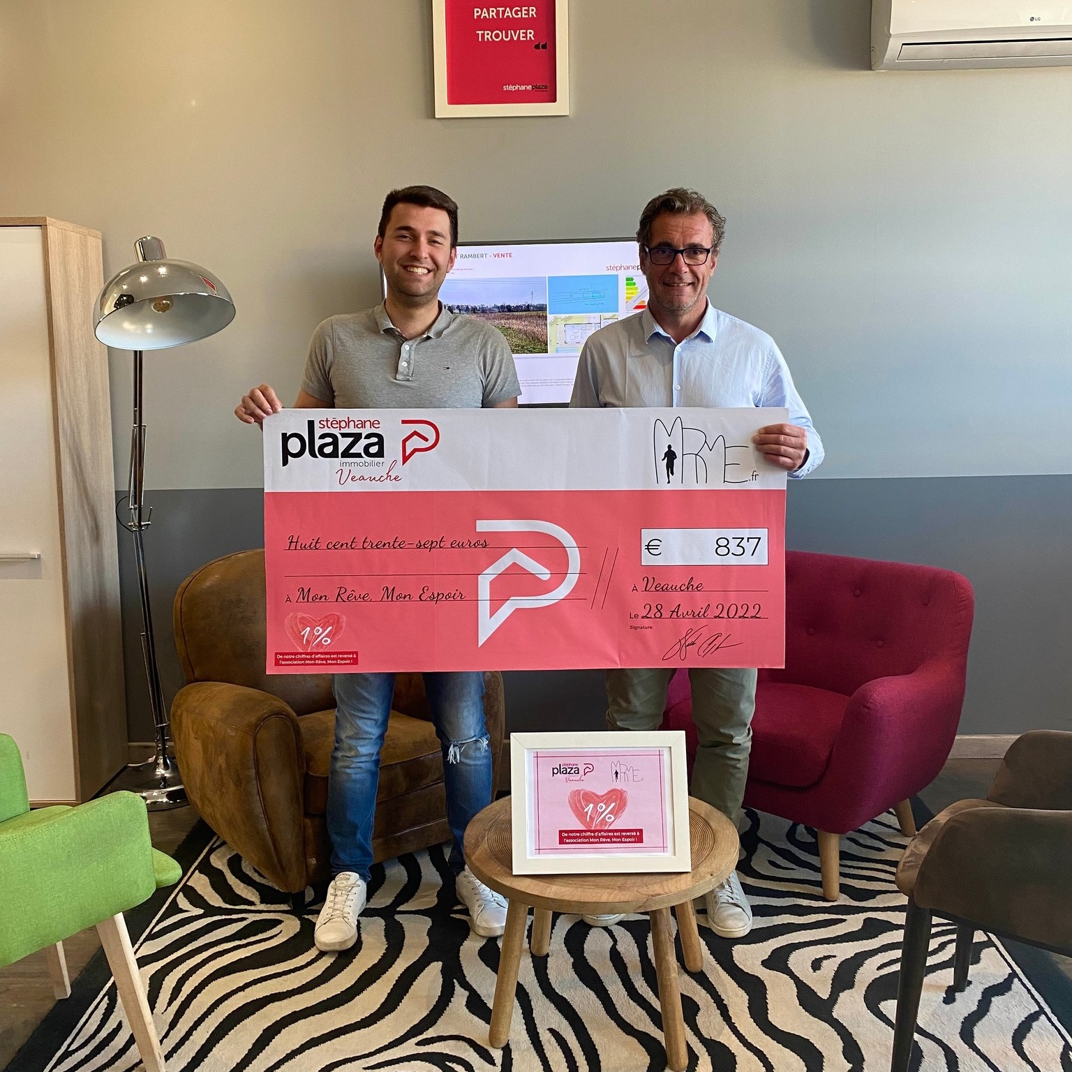 837 euros ont été récoltés suite a notre partenariat avec l’agence Stéphane Plaza Veauche.
